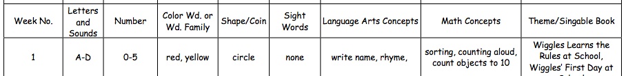 The Pacing Guide tells you which concepts, numbers, words, or shapes to work on each week. |