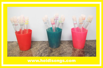 Anyway, I couldn’t figure out where she found those cute little bottles, and I also wanted to give the idea my own little creative “twist,” so I went looking on Amazon to see what kinds of little bottles I could find. I found that the cheapest thing available was plastic test tubes! So I bought 10 Packs 6-inch, 16 x150 mm Clear Plastic Test Tubes with Caps by Lake Charles Manufacturing for $3.99!
