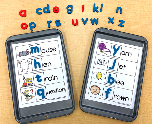 They're a fun and easy way for kiddos to practice finding the beginning, middle, and ending sounds of CVC words, and then practice spelling the whole word. Check that out here!