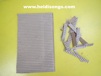 Peel back the top layer of a piece of cardboard and then cut it into strips. |