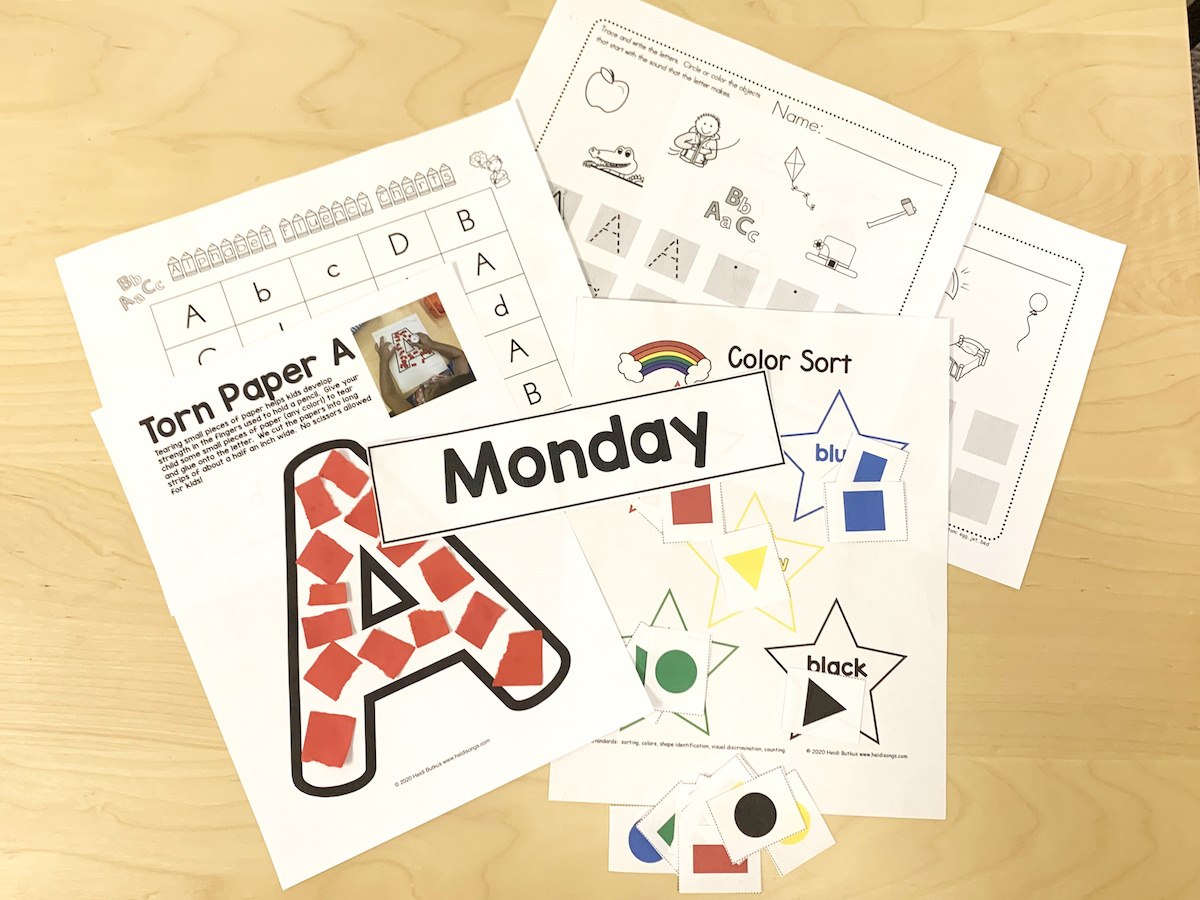 Please follow my blog for tips on how to adapt these activities for use in the classroom. Each item in this packet is the very similar to the ones I would have done in the classroom. For example, I have included a printable alphabet sort, but in class, we do this with foam letters rather than paper ones. If you are interested in how to make your activities for home and school roughly the same, just follow the blog for more information.