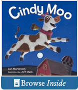 Now on to the first pages…WHY is the cow peeking out of the barn? WHAT is the girl reading? And before too long, the burning question…”WHY can’t a cow jump to the moon?” Give your listeners time to discuss the issues, just as the cows in the barn did that very night. To really stretch their thinking, insert a question that isn’t in the book. Ask students to problem-solve with partners. If a cow wanted to jump over the moon, HOW could it be done? You might get some pretty creative answers! Continue reading to find out how Cindy Loo finally makes it over the moon.