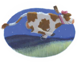 It’s time to get your kids “moo-ving!” All you need is a copy of this book and some hoops. (Real rain puddles would be best, but…well, they’re wet.) Begin by making sure that all of your little ones are familiar with the nursery rhyme “Hey Diddle Diddle.” For fun you can check out the many versions of the rhyme/song on YouTube. Here are two I liked. The first has the words and a pleasant version of the tune. The second video is from vintage Sesame Street.