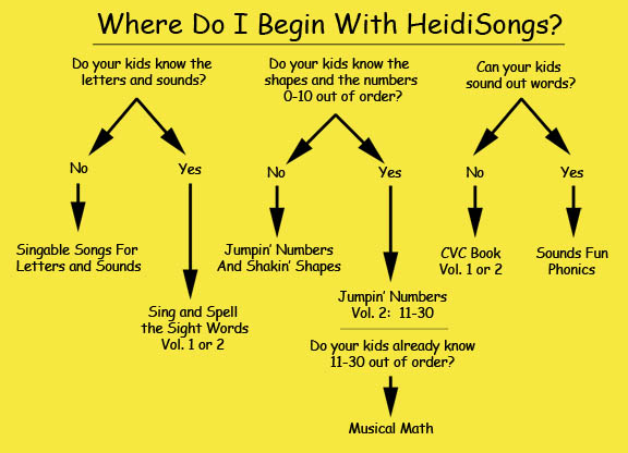 As far as the sight words are concerned, most people start with Sing and Spell Vol. 1, and this is usually the safest bet. But I always start with Sing and Spell Vol. 2, because it’s got the color words songs on it, and the kids respond very well to those songs. They are easy to learn and the songs help the kids learn these words well. After the kids learn the color words, then I switch back to Sing and Spell Vol. 1.