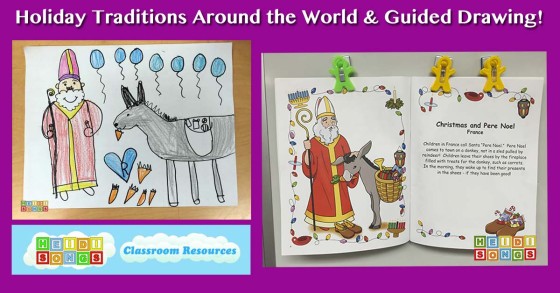 Here is a fun and FREE guided drawing lesson that you can do along with your Holiday Traditions Around the World unit! We learned how to draw France's version of Santa, known as "Pere Noel," and the donkey that he rides on when he brings his gifts! I did this with my first and second graders this week, and I'm so pleased with the results! I hope you get a chance to make use of it and enjoy it, too!