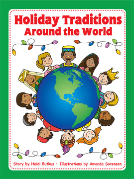 One reason that I wrote my Holiday Traditions Around the World book is because each time I found a book about a certain holiday, it was usually very long and gave so much information! My book has just one short paragraph about each holiday to accommodate the short attention span of the average primary student. But you could probably just TELL the children what you know about each holiday and show them a photo you may be able to find online, and proceed like this. That’s the budget way!