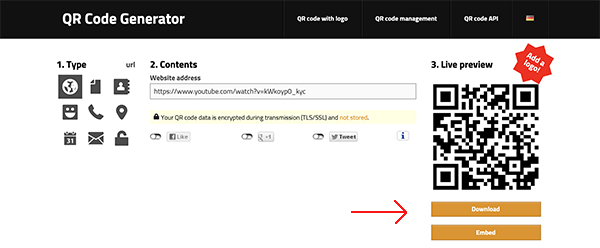2. Click “Download” to be sure your newly generated code saves on your computer. The code will download as a regular old .jpg file that you can rename whatever you would like and store in a folder on your computer. That QR code that you just generated is a code that is uniquely yours to use as you please!