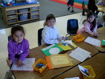 | This is our Art Table. The children are doing one of my Singable Books, “Dinner’s Ready.” |