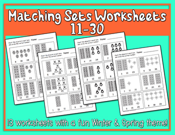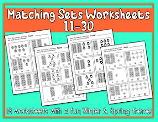 Moving to the right one column on Week 16 of the Pacing Guide/Curriculum Map, we see that the next item to work on is number 22. Basically, we are working on the numbers in the twenties during this time of year. If I click on that number 22, it takes me here to these Number Fluency Charts. Once in that file, I would need to find a chart with that number on it and have my students read through that.If I need more worksheets for the numbers in the twenties, I look to the right on the guide to the Math Concepts column. I click on that, and find these Matching Sets 11-20 worksheets.
