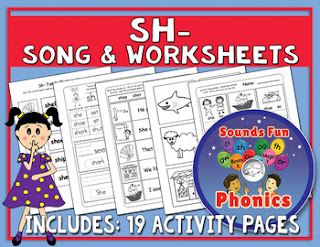 | This packet has 28 activity pages and the mp3 file of the Sh Song, plus the Sounds Fun flashcard for that sound. Teachers or parents could use anything in the packet to help teach and practice that skill. There is MUCH MORE in this packet than any child should do in one week! I recommend that you pick and choose the things that you think your students or child would respond best to. Just make sure that they do practice reading the words in full sentences and not just in isolation. |
