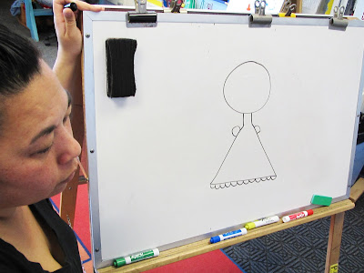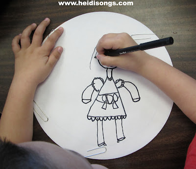 One thing that we also do to help the project be successful is to lightly pencil in the head onto their papers in the correct size and placement ahead of time. That way, we know that they will at least start off in the correct place, with the correct sized head. If the head is too small, they cannot continue with the face. And if they put it in the wrong place, there will be no room for the dress, etc. So the size and placement of the head is a deal breaker!