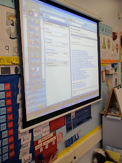 Look at the picture, and you can see how far I had to push the computer table over and stretch the cables as far as they would go in order to make use of the Now! Board. My students usually sit where the computer table is in this photo, and then I had to stretch the cord over and set the laser onto a chair to try it out. I did get the board calibrated for a short time. Then once I touched the screen hard enough to make it move, the board had to be re-calibrated again. Of course, the children are usually seated where those cords are stretched across, so they would probably be touching that cord and therefore moving that laser that projects onto the board. This would cause the whole thing to need to be re-calibrated again.