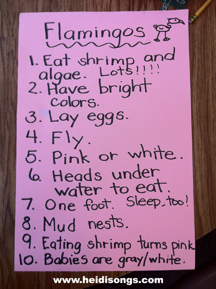We brainstormed what we knew about flamingos first! |