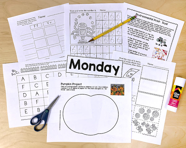 Week 7 focuses on the letter E, number 5, and the sight word "go". There are four worksheets/activities for the letter E, along with fluency practice for letters A-E. We've also included a fun counting creatures worksheet for the number 5 and shape creatures worksheet for finding rectangles. Just like in week 6, for this week we're including worksheets for "environmental print". Environmental print is “everyday life” writing that is not in a book, such as logos, signs on buildings, labels, street signs, food wrappers, etc. I'm having my students look for letters they know, on things like a cereal box, a magazine or newspaper, or other things they find around the house!