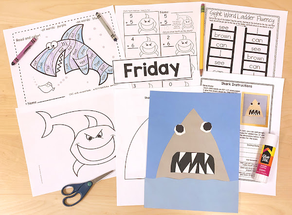 This week focuses on: Reviewing Letters A-Z, Reviewing Numbers 0-20, Letter fluency practice for letters A-T (capitals), Sea Life Alphabet Writing A-Z*, Number Fluency Chart: 1-19 (odds), Square, oval, triangle, rectangle fluency chart, Sentence Writing practice, Sea Life Number Writing & Graph*, Rhyming Sea Life worksheet*, Sea Life Word Problems addition worksheet, Shark Teeth Addition worksheet, Under the Sea color words worksheet*, Shark Word Families worksheet*