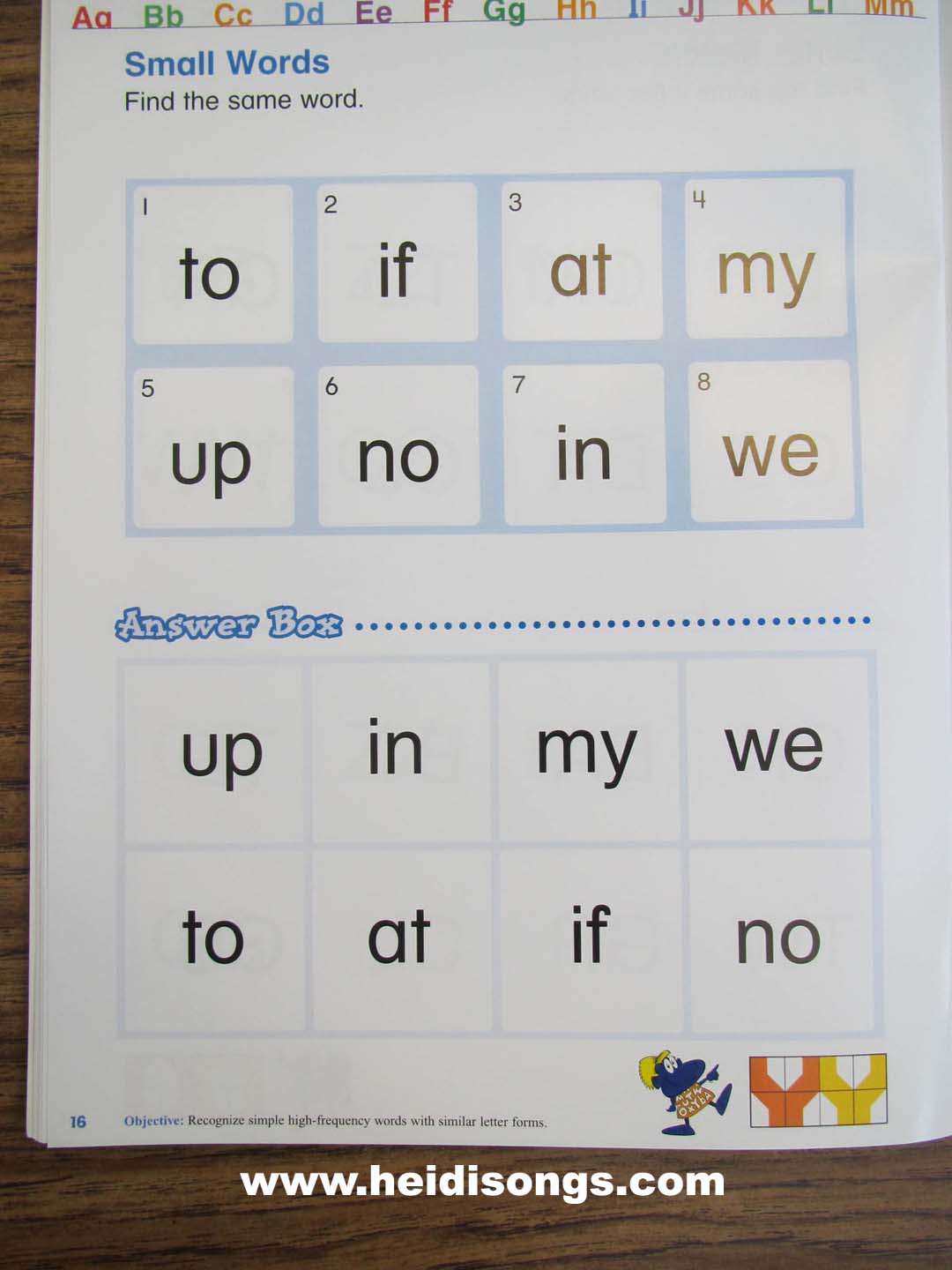 A page from the Letters and Words Readiness book. |