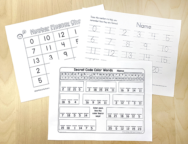 1. Two number identification fluency charts (0-5 and 0-15) (From our Number Fluency Charts)