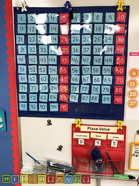 Counting On and Backwards: Find the given number on the number line. Point to it and say, “Let’s count on from ___.” Then say that number again, and then begin counting forward. After that, say, “Let’s count backwards from ____.” Then find the given number again on the number line. Point to it, say it, and then start counting backwards. Even if these concepts are not on your present standards, I would encourage you to go over them with the children a couple of times per week! I found that many of the children in my second grade class simply did not know these concepts. It was embarrassing for them, and tough to find the time to go over those concepts that should have been learned earlier.