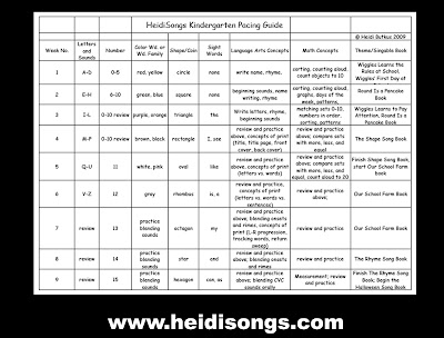 | The Pacing Guide tells you which concepts, numbers, words, or shapes to work on each week. |