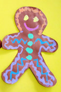 My class also painted Gingerbread Men this week, and they turned out absolutely darling! To make this project, simply give the children a tracer of the Gingerbread Man and let them trace and cut it out. I like to give them a variety of brown colored sheets of paper to choose from. After that, they can paint it using regular tempera paints mixed with lots of white paint to give them a pastel shade.